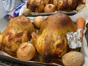 慌ただしくて、オーブンでの加熱時間短めでしたが中のピラフが、味見させていただいた時より鶏の水分でご飯が柔らかくチキンの味を吸っていて美味しかったです(emoji)